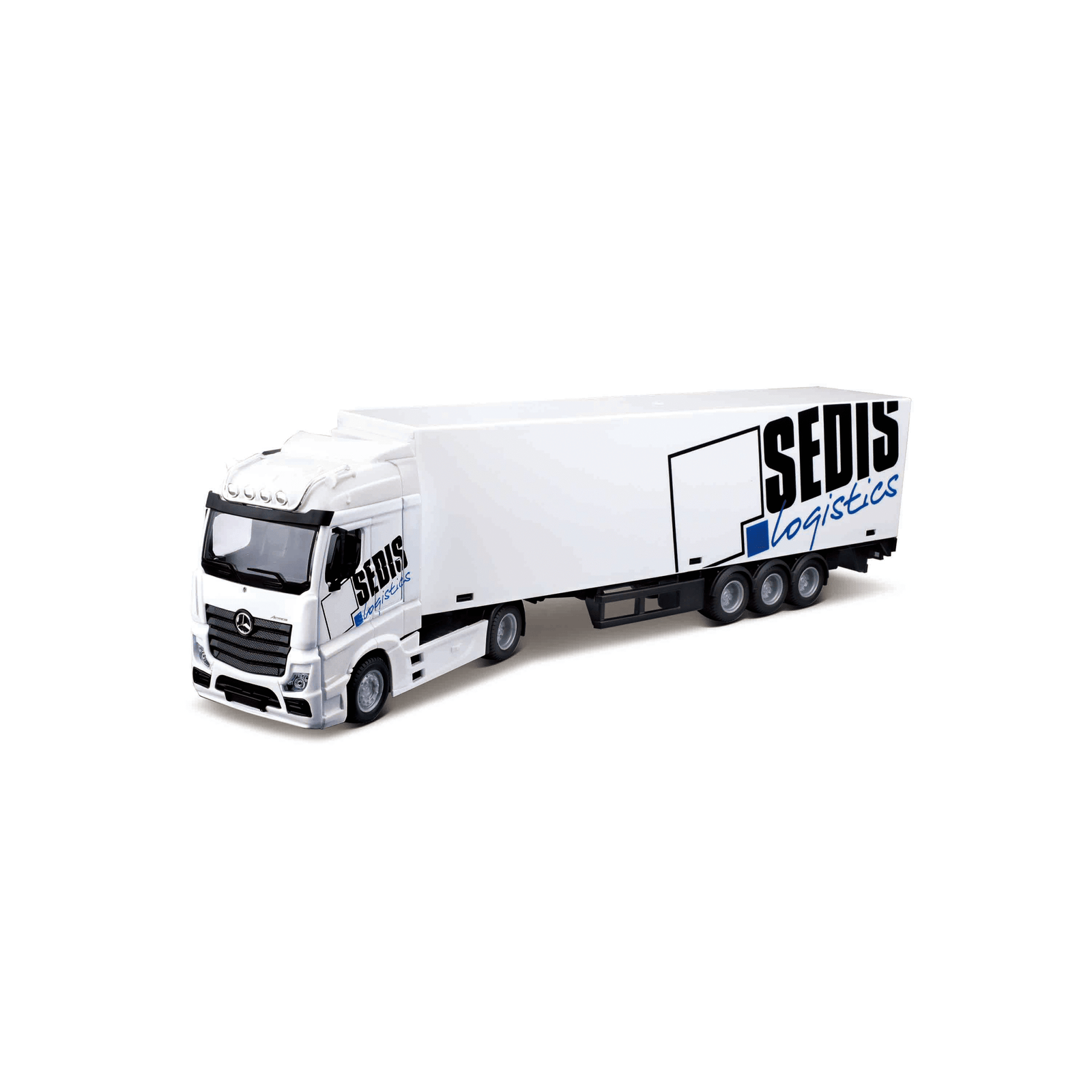 El Trailer Mercedes Benz Actros con montacargas incluido es una representación a escala 1:43 que captura la esencia del icónico vehículo de la marca alemana. Este modelo no es un simple juguete; es una auténtica pieza de colección ideal para aficionados de la ingeniería automotriz y de la prestigiosa línea Mercedes-Benz. Su elegante acabado en color blanco y la atención al detalle hacen que sea una elección destacada tanto para grandes como pequeños.