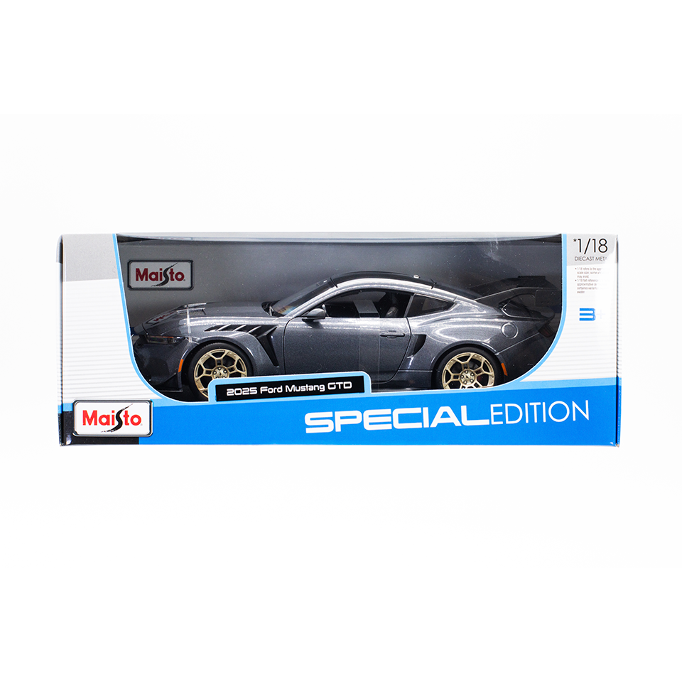 Descubre el Ford Mustang GTD 2025 Maisto Special Edition a escala 1:18, un verdadero homenaje a la ingeniería automotriz y al icónico diseño de Ford. Diseñado para los amantes de los vehículos a escala y los coleccionistas más exigentes, este modelo destaca por su nivel excepcional de detalle y acabados impecables. Fabricado con metal Die Cast, garantiza robustez y una apariencia auténtica que hace que cada elemento cobre vida.