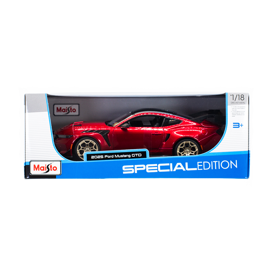 Descubre el Ford Mustang GTD 2025 Maisto Special Edition a escala 1:18, un verdadero homenaje a la ingeniería automotriz y al icónico diseño de Ford. Diseñado para los amantes de los vehículos a escala y los coleccionistas más exigentes, este modelo destaca por su nivel excepcional de detalle y acabados impecables. Fabricado con metal Die Cast, garantiza robustez y una apariencia auténtica que hace que cada elemento cobre vida.