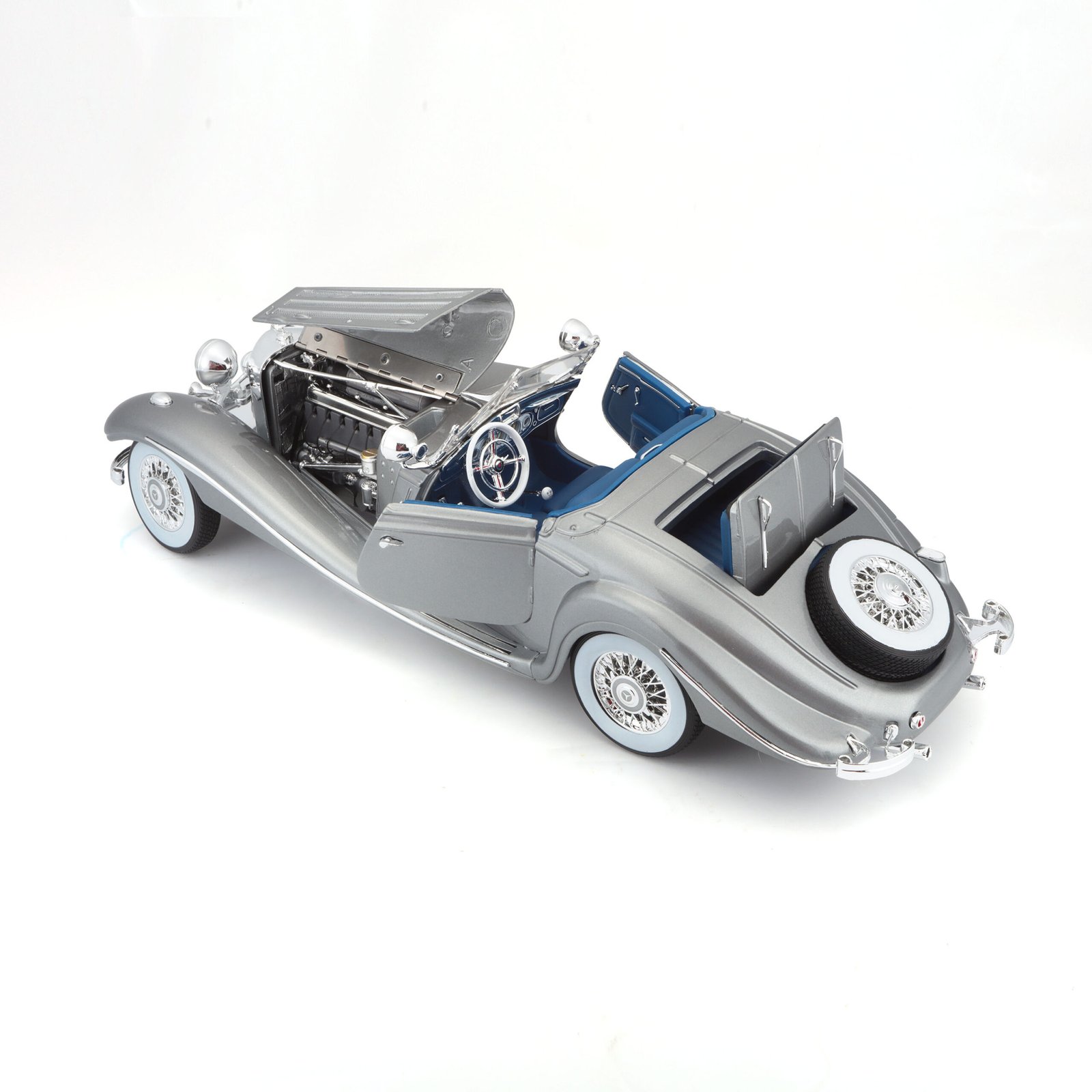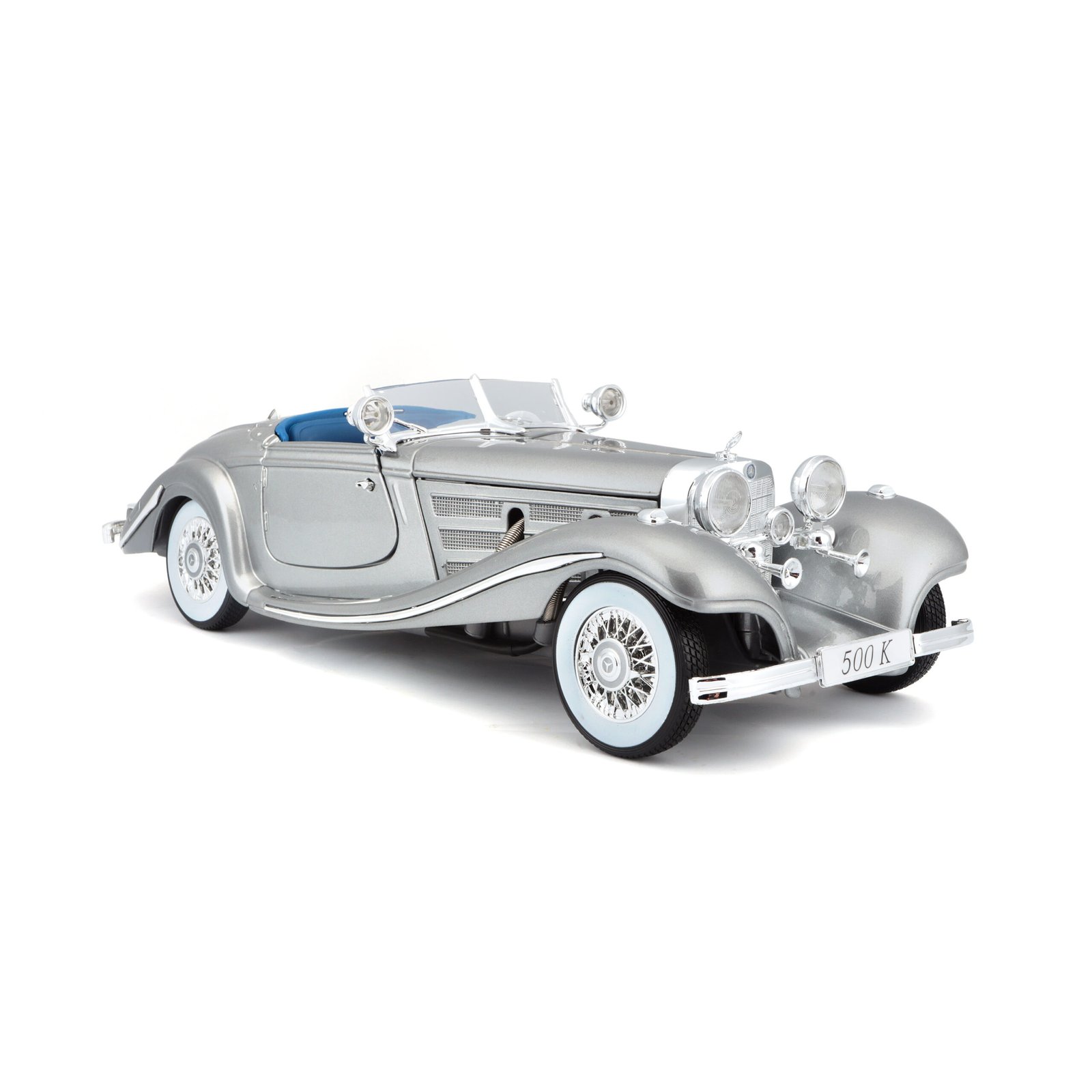 Descubre el inconfundible encanto del Mercedes-Benz 500K Special Roadster a escala 1:18 de Maisto, una réplica que rinde homenaje a uno de los automóviles más icónicos de la década de 1930. Este modelo captura a la perfección el lujo, la sofisticación y el diseño imponente que convirtieron al 500K en un símbolo de estatus y elegancia. Su acabado en color gris realza las líneas clásicas y fluidas de la carrocería, convirtiéndolo en una pieza imprescindible para coleccionistas y amantes de los autos clásicos.