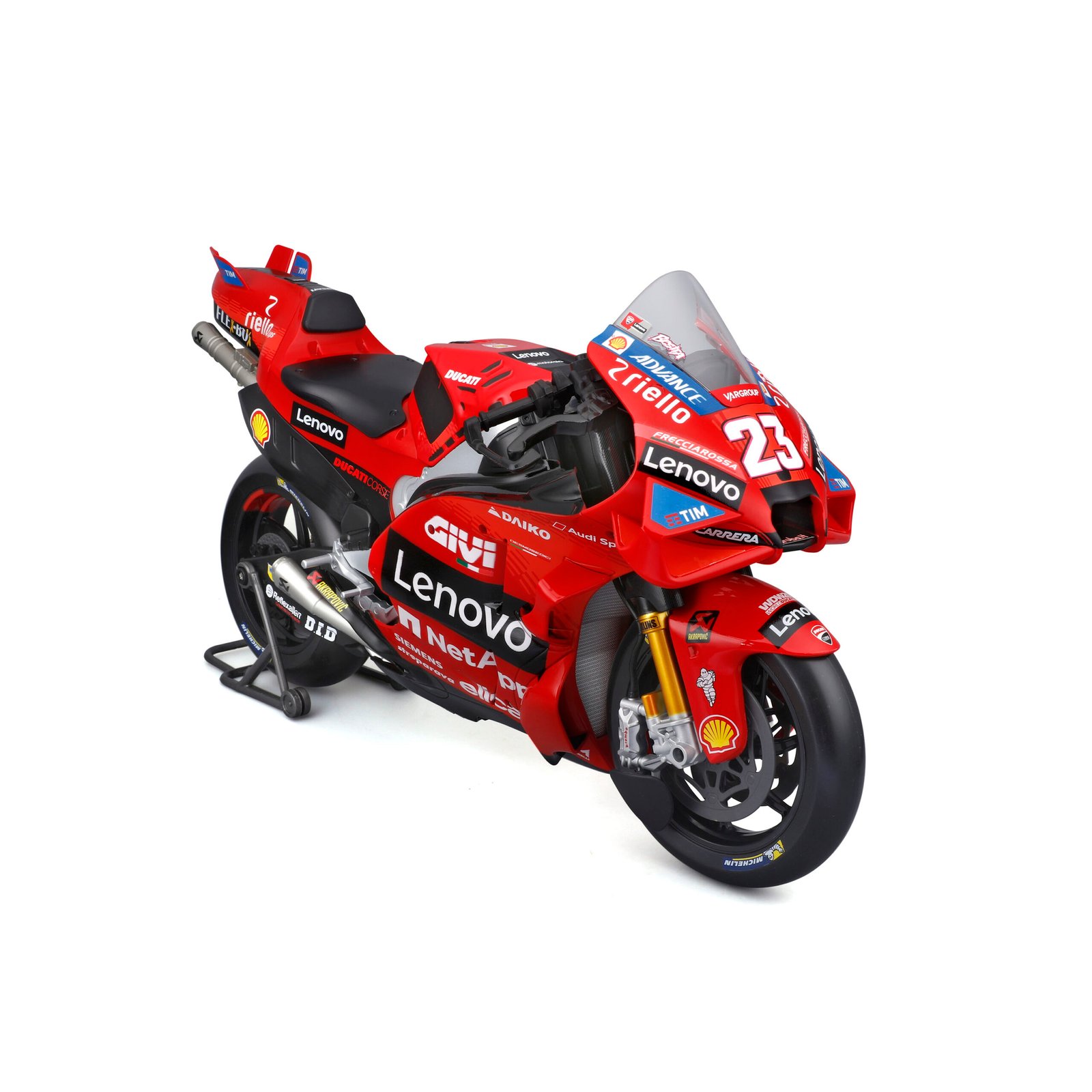 Fabricada con materiales de primera calidad, esta moto garantiza durabilidad y belleza. Desde los acabados brillantes hasta las piezas meticulosamente ensambladas, sentirás la autenticidad de una moto que recrea cada aspecto de su contraparte real. Los colores vivos y las líneas aerodinámicas capturan fielmente la esencia del modelo Ducati Lenovo GP Racing.