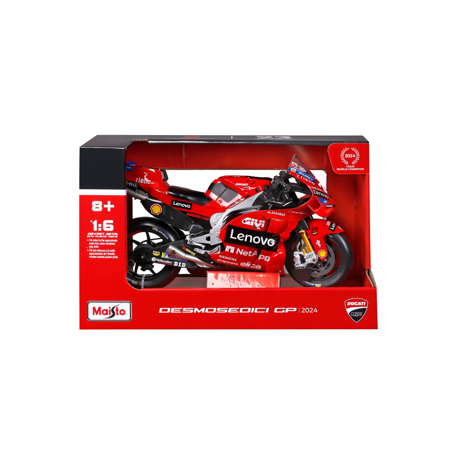 Descubre la Moto Ducati Lenovo GP Racing (2024) a escala 1:6, una obra maestra creada para aquellos apasionados por las motocicletas y los coleccionistas más exigentes. Esta réplica no solo captura el modelo Bagnaia con una precisión impresionante, sino que también refleja el espíritu de las carreras de alto nivel. Cada detalle ha sido cuidadosamente diseñado para brindarte una experiencia única en miniatura.