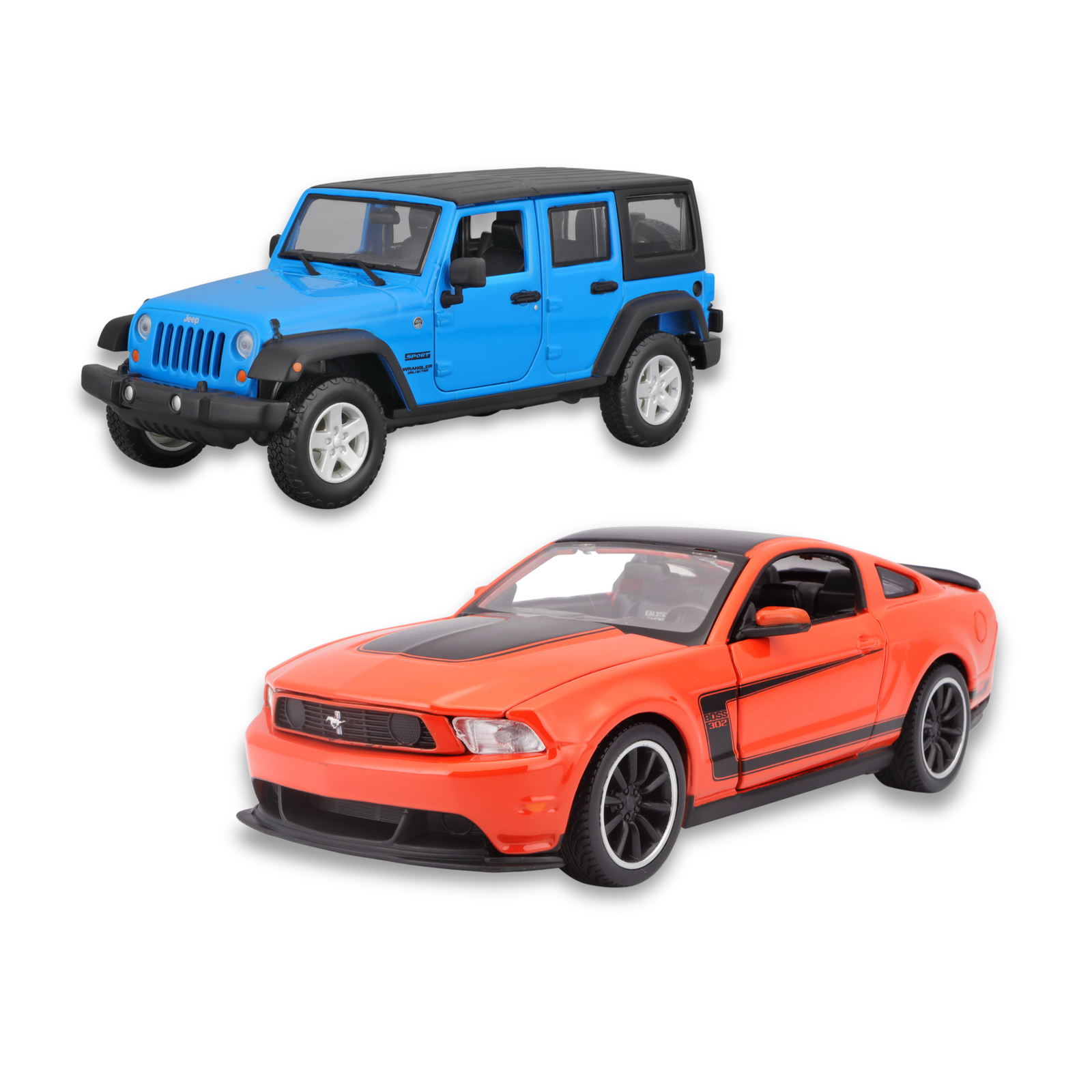 El Jeep Wrangler Unlimited 2015 destaca por su diseño robusto, capacidad todoterreno incomparable y espíritu aventurero, convirtiéndose en la elección ideal para quienes admiran la exploración sin límites. Por otro lado, el Ford Mustang Boss 302 2012 brilla con su estética deportiva, líneas agresivas y legado racing, siendo un muscle car que continúa conquistando los corazones de los aficionados. Fabricados en metal die-cast, ambos modelos ofrecen acabados realistas, interiores cuidadosamente diseñados y partes móviles para observar cada detalle con precisión y admiración.