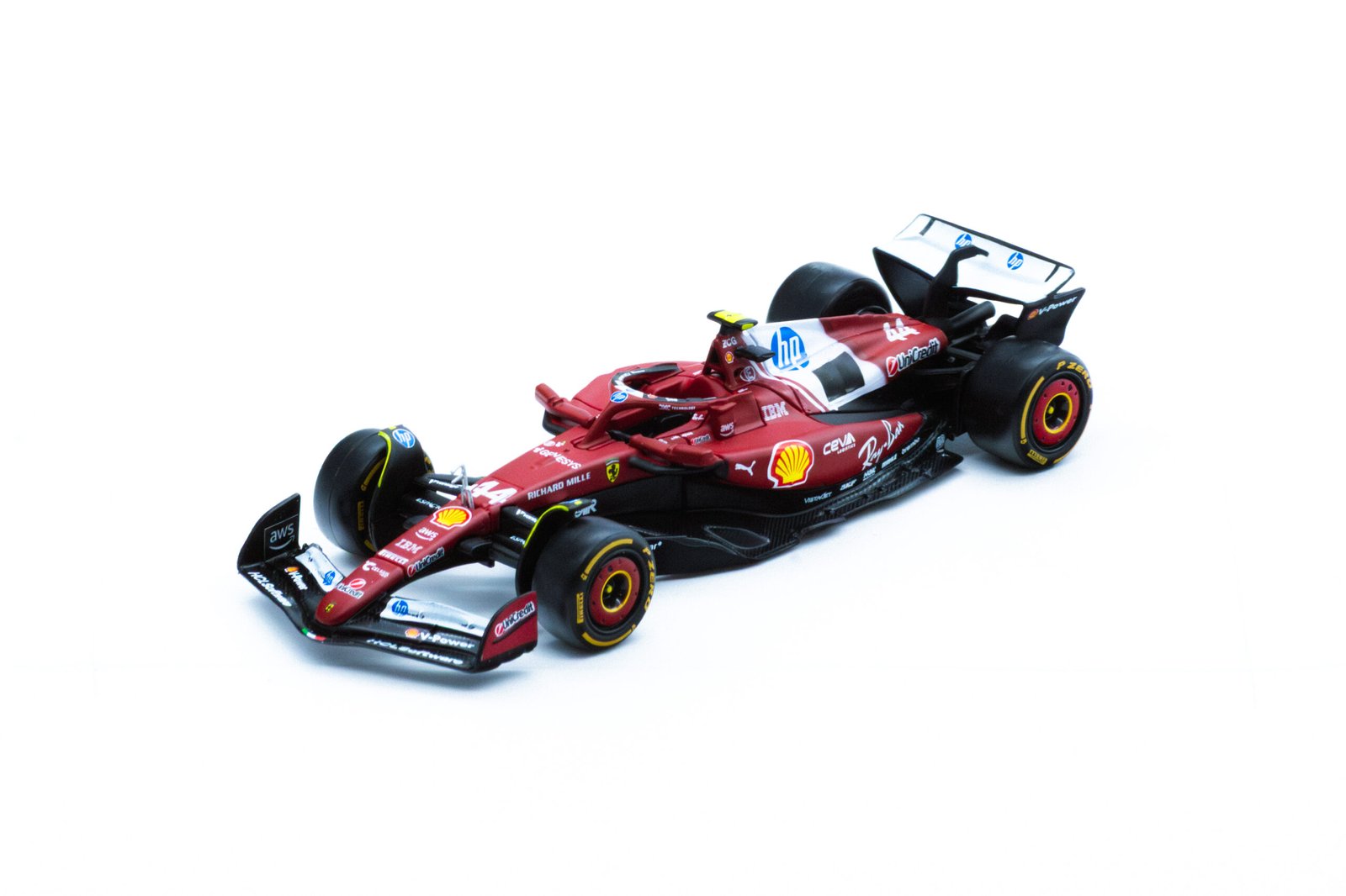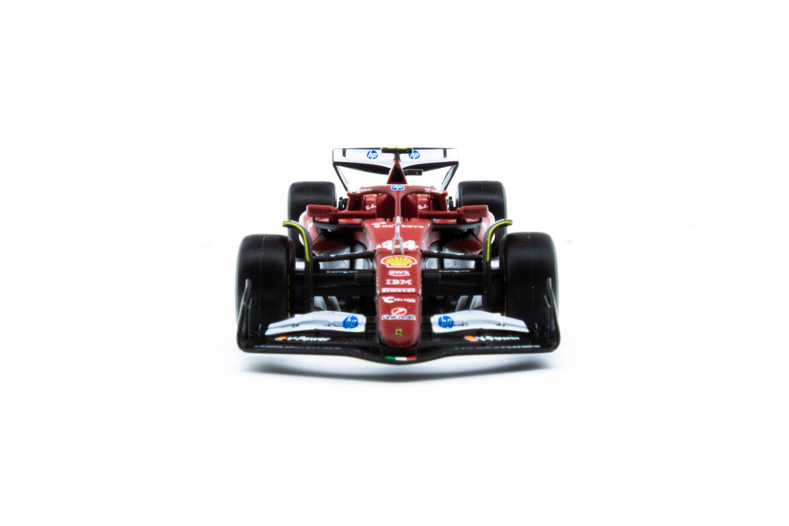 Fabricado con una carrocería de metal Die Cast, el Ferrari SF-25 asegura resistencia y durabilidad, acompañadas de un acabado impecable que subraya su diseño aerodinámico. Las líneas y formas del modelo replican con gran detalle las del vehículo original, proporcionando una experiencia visual auténtica que encantará tanto a los coleccionistas como a los aficionados al automovilismo. Como parte de la colección Race F1, este modelo trasciende como un homenaje a la ingeniería automovilística de vanguardia.