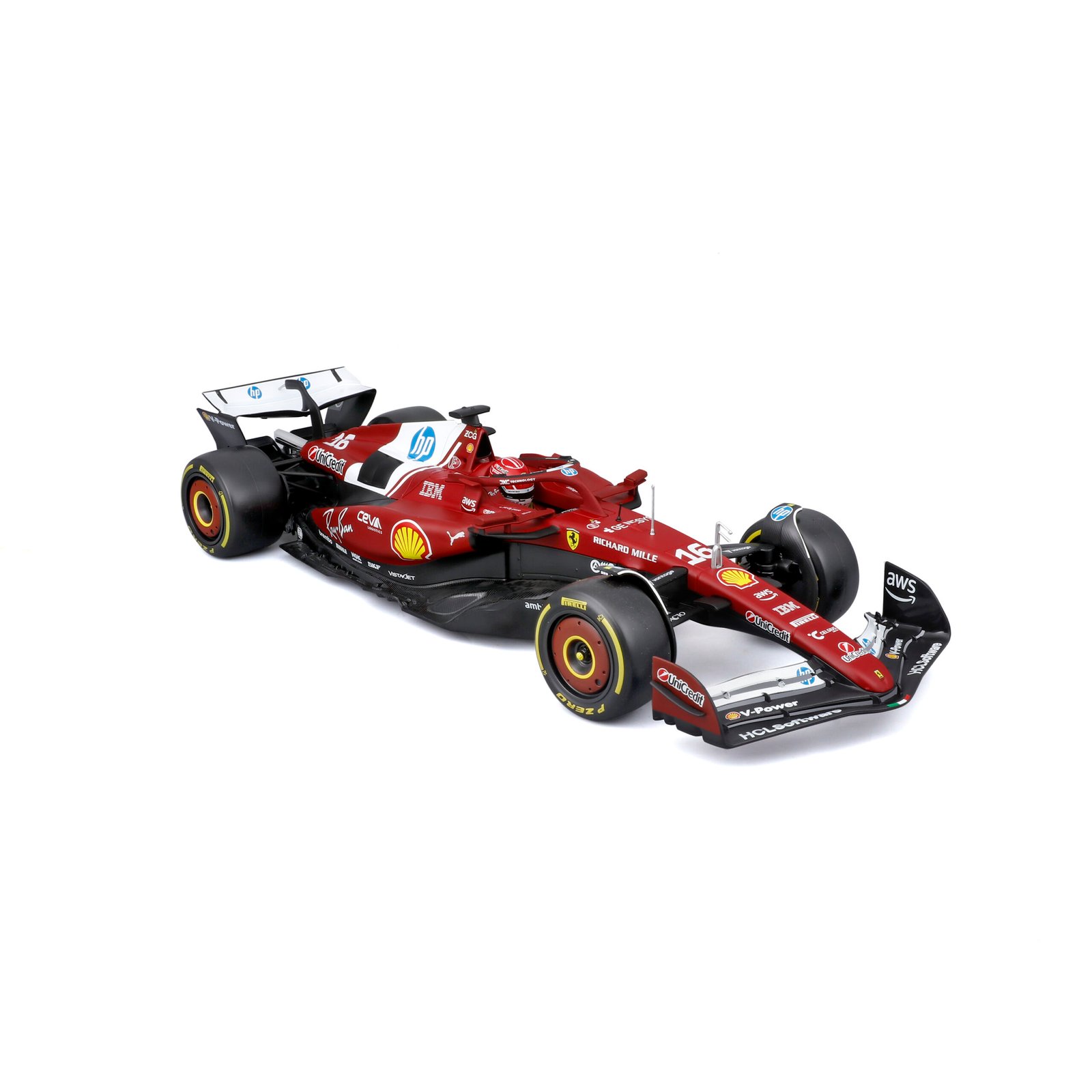 Este modelo a escala es una verdadera joya, creada con una carrocería de metal Die Cast que captura cada línea aerodinámica y cada vibrante color característico de Ferrari. Representando al piloto Charles Leclerc y luciendo el icónico número 16, este auto es una pieza única que se adapta tanto para coleccionistas como para exhibiciones en cualquier espacio con clase.