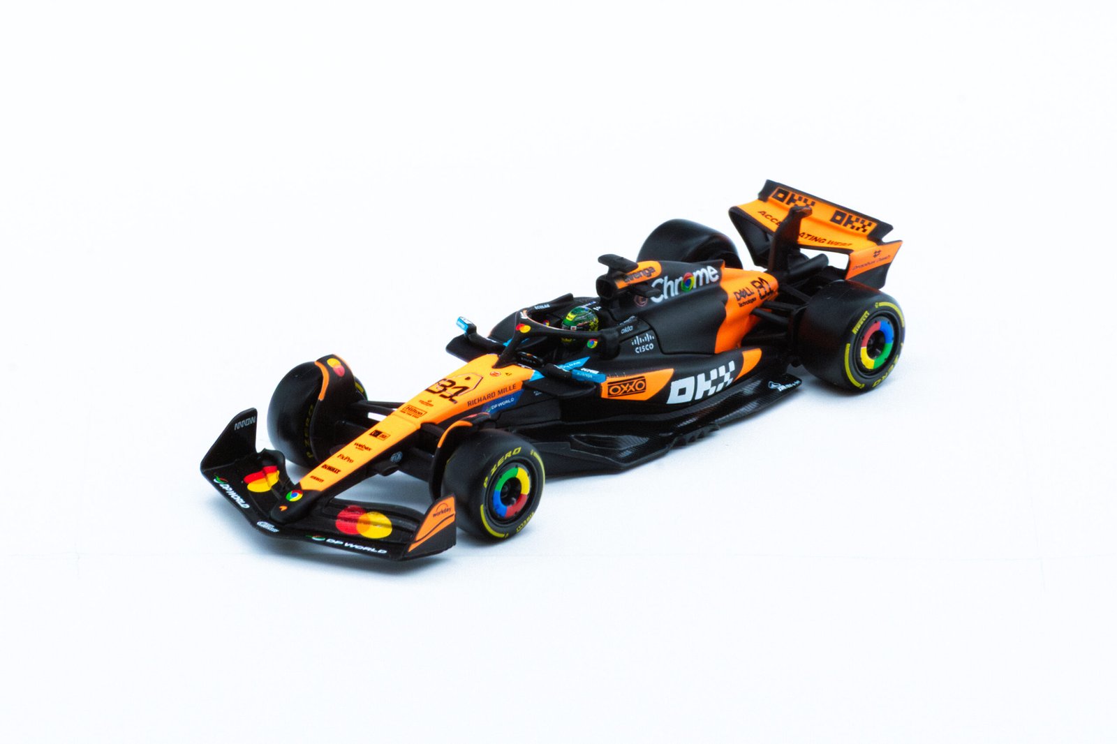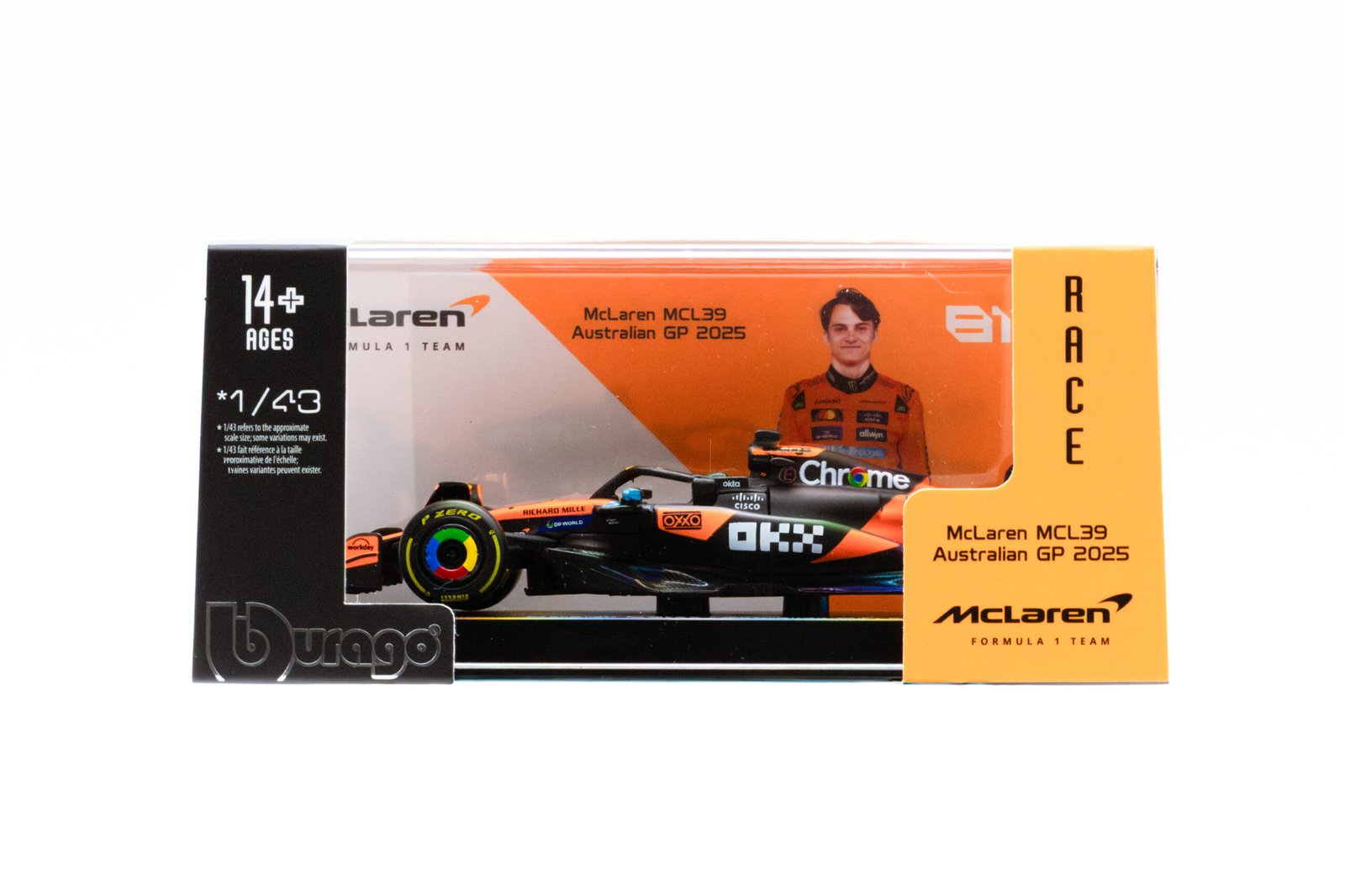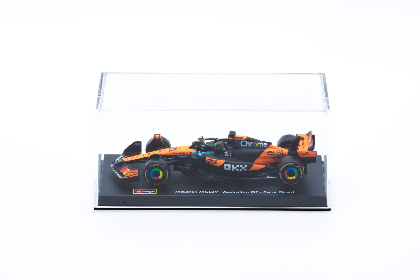 El McLaren MCL39 2025 no solo destaca por su diseño, sino también por la calidad excepcional de sus materiales. Fabricado con metal fundido y plástico de alta resistencia, este modelo asegura durabilidad y un acabado impecable. Cada aspecto, desde las ruedas detalladas hasta los interiores finamente modelados, refleja un compromiso con la excelencia. El casco de Oscar Piastri, presentado junto al vehículo, añade un toque auténtico y exclusivo que lo lleva más allá de ser un simple modelo: es una pieza de arte.