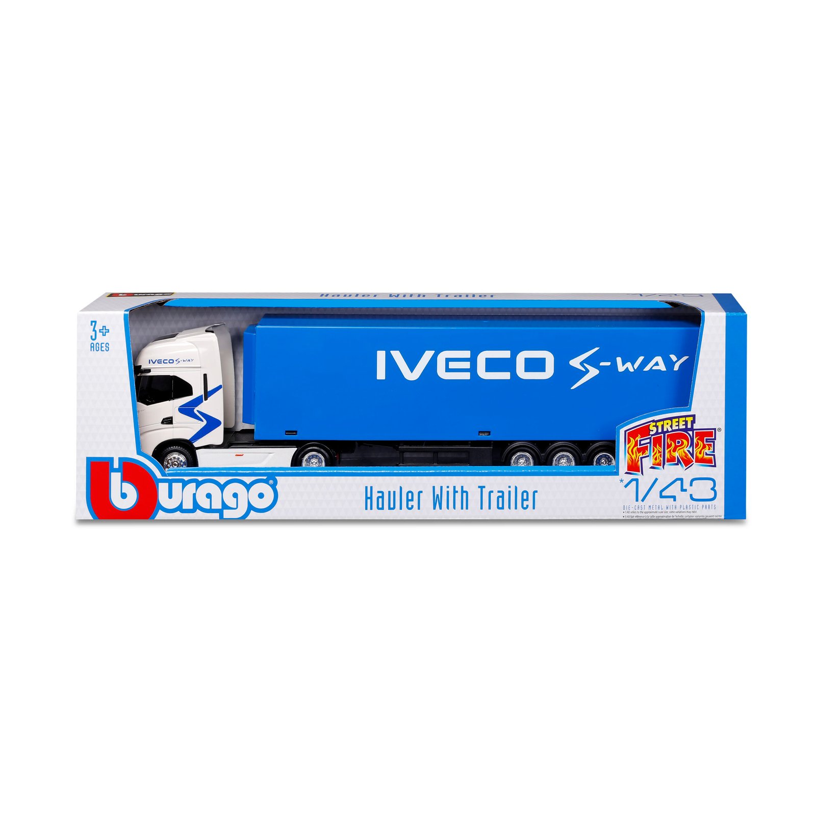Descubre el Trailer Iveco S-way de Bburago, un impecable modelo a escala 1:43 que destaca por su calidad y su fiel representación del vehículo original. Fabricado en metal Die Cast, este modelo azul refleja un alto nivel de detalle, convirtiéndolo en una pieza esencial para coleccionistas y apasionados de los automóviles. Desde sus acabados hasta su estructura resistente, todo en este modelo fue concebido para impresionar.